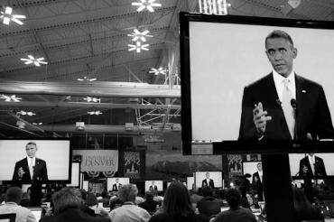L’enthousiasme et la force de conviction que le président des États-Unis est capable d’instiller lors d’un meeting étaient absents de sa confrontation avec son adversaire républicain Mitt Romney. Barack Obama est apparu las, et parfois résigné. Résigné à pointer les impasses (bien réelles) dans le programme de son opposant, résigné à défendre ses choix politiques qui n’ont pas permis (encore ?) de sortir le pays de la crise, résigné à expliquer une nouvelle fois les détails de son plan d’assurance santé. Sur le fond, le président s’est voulu pédagogue, mais la résignation emporte rarement l’adhésion à la télévision.