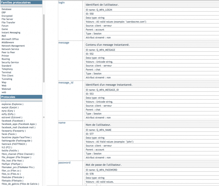 Mais voilà, cette vision des activités de Qomos ne correspond qu’en partie au «Protobook», une sorte de catalogue interne listant les protocoles que les sondes de la société sont capables de capter. Mediapart et Reflets ont pu consulter une version de catalogue datant de l'année 2013.