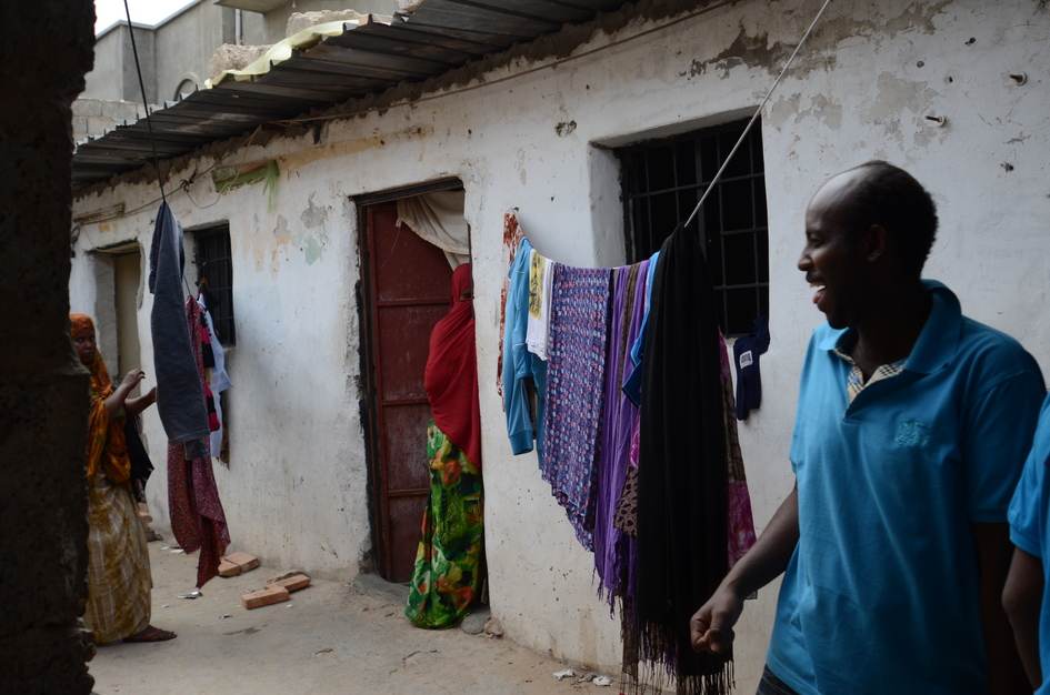 À Tripoli, une maison de Somaliens : les conditions de vie des migrants « en liberté » ne sont souvent pas meilleures. Obligés de vivre dans des quartiers défavorisés de la ville, en payant des prix très élevés pour de vrais taudis, ils sont contraints de vivre à plusieurs par habitation, une trentaine par maison. Pendant la nuit, ils sont à la merci des habitants du quartier qui n’hésitent pas à entrer la nuit, à menacer les habitants avec des armes et à leur voler le peu de valeur qu'ils ont, argent et portables.