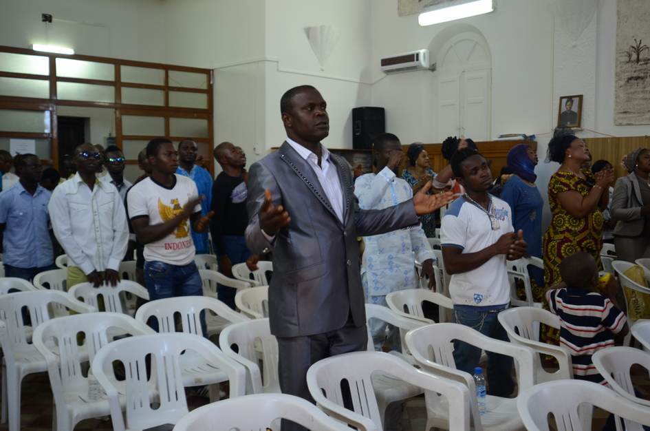 Après la messe, les Nigérians se retrouvent dans une petite salle de l’église pour chanter et prier ensemble. Un moment de paix dans un contexte de traque continue.